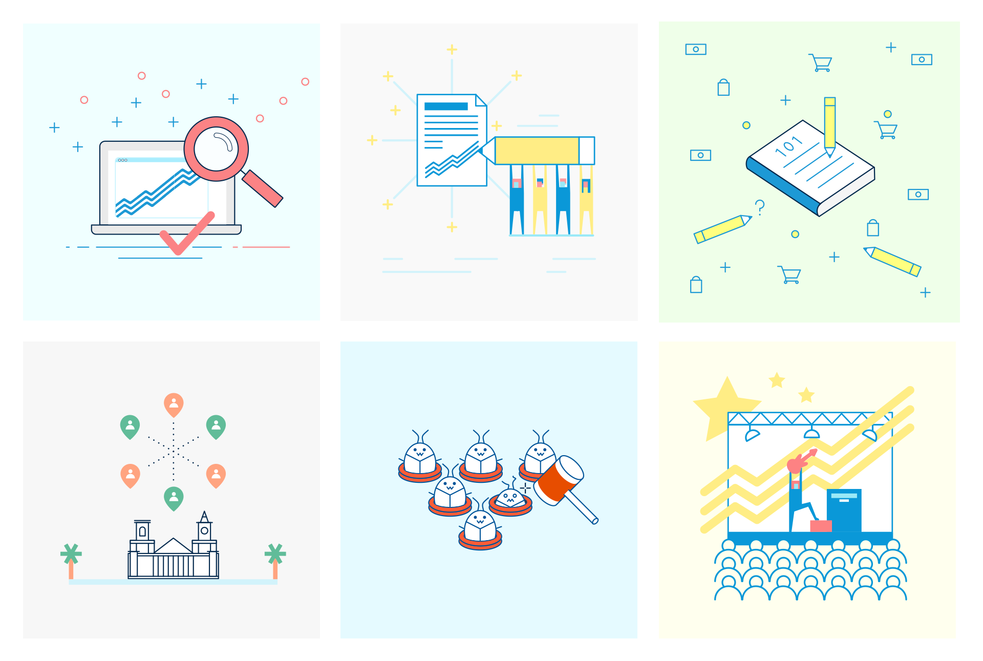 Developed an editorial illustration direction for Reaction Commerce, an open-source, real-time platform for e-commerce businesses. I created blog illustrations, email templates, and a video package that fits within Reaction Commerce's pre-existing brand identity.