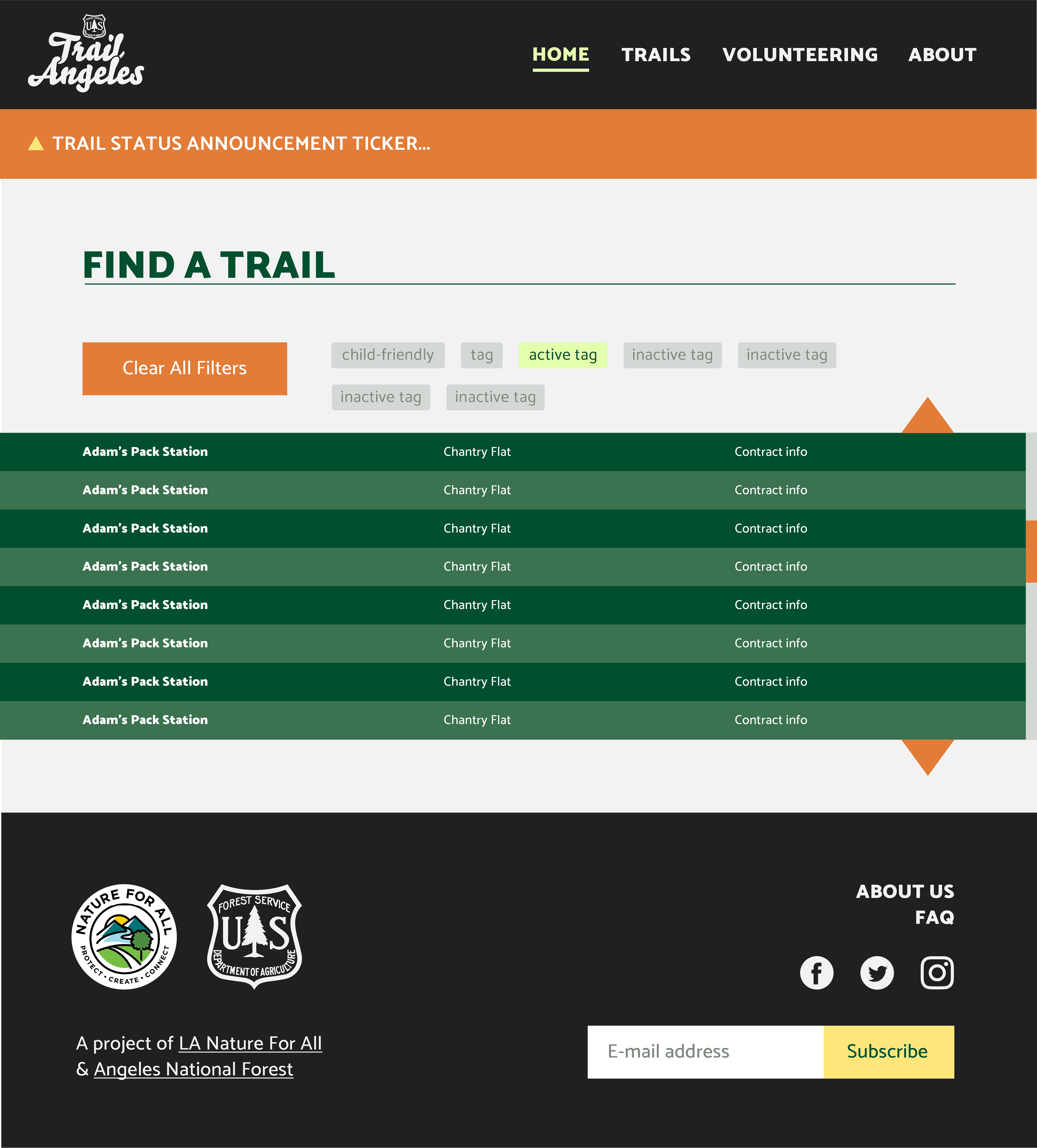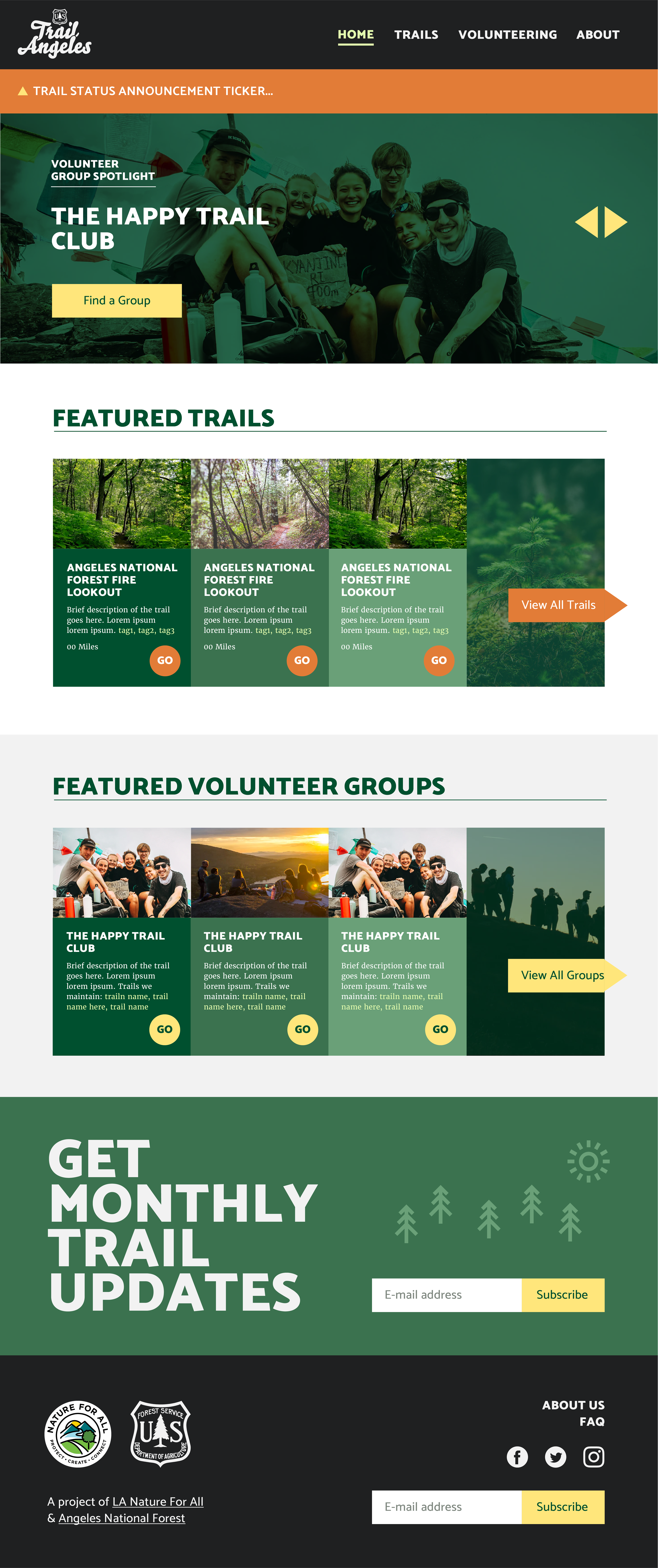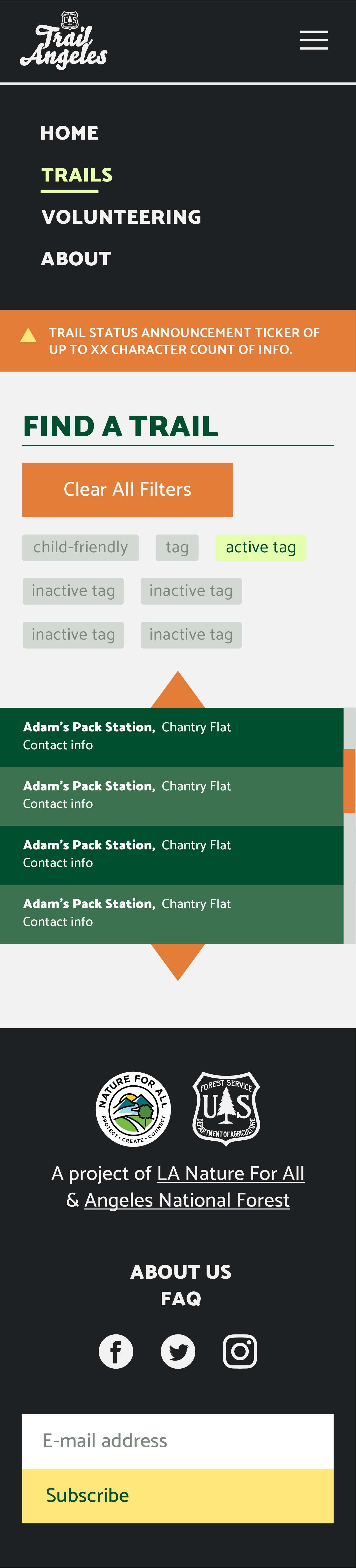 Branding for and UI mockups for Trail Angeles, an open-sources LA National Forest volunteer portal maintained by volunteer devs.
