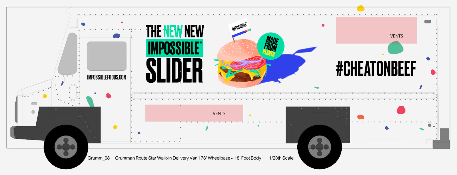 Truck wrap and slider packaging for the 2.0 version debut of Impossible Foods’ plant-based formula at CES.