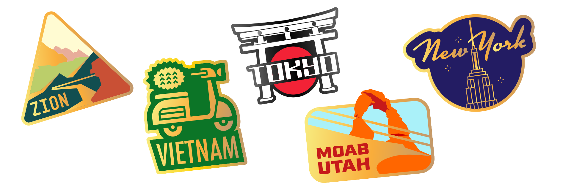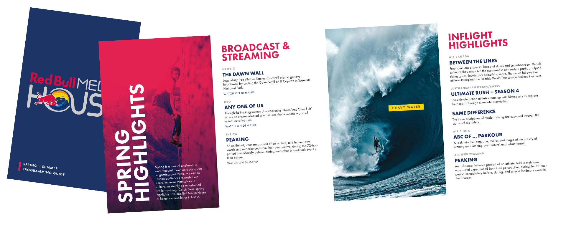 Destination enamel pins and an in-flight program book for a Red Bull extreme-sports-influencer activation.